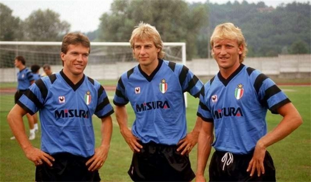 等到1988年的时候,马特乌斯跟队友布雷默一起,登陆意甲联赛,为国际米兰效力。这两位实力派球员加盟国米的第一个赛季,蓝黑军团就力压米兰、那不勒斯等强师劲旅,斩获联赛冠军。这个赛季结束之后,在德国球员身上尝到甜头的国际米兰,又引进了另外一位德国球员克林斯曼,组成了名震天下的德国三驾马车。